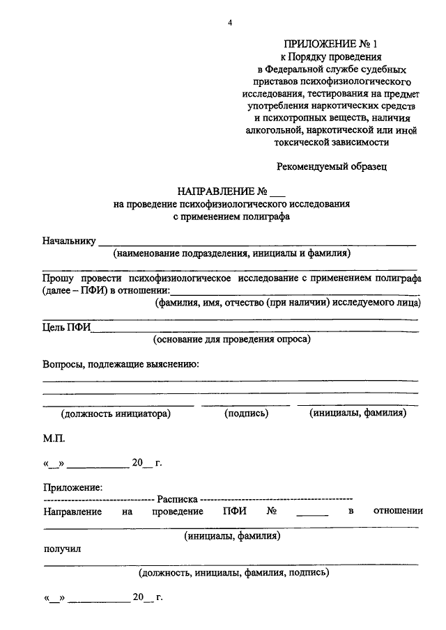"ОБ УТВЕРЖДЕНИИ ПОРЯДКА ПРОВЕДЕНИЯ В ФЕДЕРАЛЬНОЙ СЛУЖБЕ СУДЕБНЫХ ПРИСТАВОВ ПСИХОФИЗИОЛОГИЧЕСКОГО ИССЛЕДОВАНИЯ, ТЕСТИРОВАНИЯ НА ПРЕДМЕТ УПОТРЕБЛЕНИЯ НАРКОТИЧЕСКИХ СРЕДСТВ И ПСИХОТРОПНЫХ ВЕЩЕСТВ, НАЛИЧИЯ АЛКОГОЛЬНОЙ, НАРКОТИЧЕСКОЙ ИЛИ ИНОЙ ТОКСИЧЕСКОЙ ЗАВИСИМОСТИ"