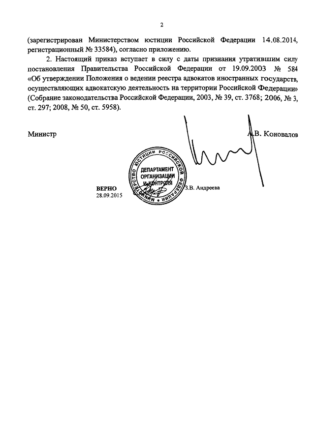 ПРИКАЗ Минюста РФ от 25.09.2015 N 225