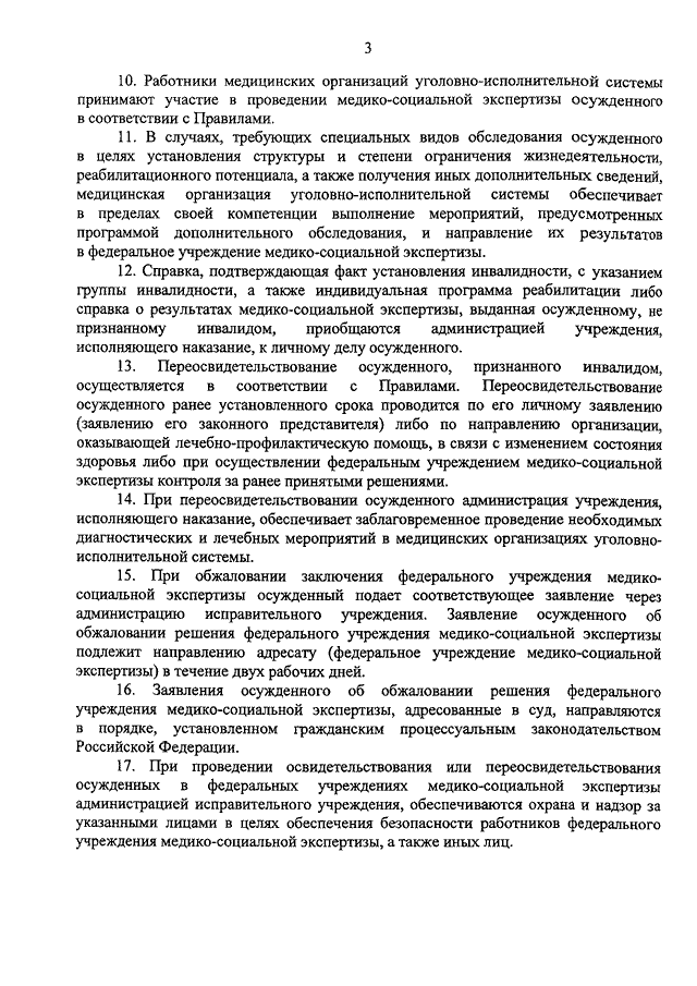 "ОБ УТВЕРЖДЕНИИ ПОРЯДКА И СРОКОВ НАПРАВЛЕНИЯ НА ОСВИДЕТЕЛЬСТВОВАНИЕ И ПЕРЕОСВИДЕТЕЛЬСТВОВАНИЕ ОСУЖДЕННЫХ, ЯВЛЯЮЩИХСЯ ИНВАЛИДАМИ И НАХОДЯЩИХСЯ В ИСПРАВИТЕЛЬНЫХ УЧРЕЖДЕНИЯХ, ПОДАЧИ УКАЗАННЫМИ ЛИЦАМИ ЗАЯВЛЕНИЙ НА ПРОВЕДЕНИЕ ОСВИДЕТЕЛЬСТВОВАНИЯ ИЛИ ПЕРЕОСВИДЕТЕЛЬСТВОВАНИЯ, ОБЖАЛОВАНИЯ РЕШЕНИЯ ФЕДЕРАЛЬНОГО УЧРЕЖДЕНИЯ МЕДИКО - СОЦИАЛЬНОЙ ЭКСПЕРТИЗЫ, А ТАКЖЕ ПОРЯДКА ОРГАНИЗАЦИИ ОХРАНЫ И НАДЗОРА ЗА ОСУЖДЕННЫМИ, НАХОДЯЩИМИСЯ В ИСПРАВИТЕЛЬНЫХ УЧРЕЖДЕНИЯХ, ПРИ ПРОВЕДЕНИИ ИХ ОСВИДЕТЕЛЬСТВОВАНИЯ ИЛИ ПЕРЕОСВИДЕТЕЛЬСТВОВАНИЯ В ФЕДЕРАЛЬНЫХ УЧРЕЖДЕНИЯХ МЕДИКО - СОЦИАЛЬНОЙ ЭКСПЕРТИЗЫ"