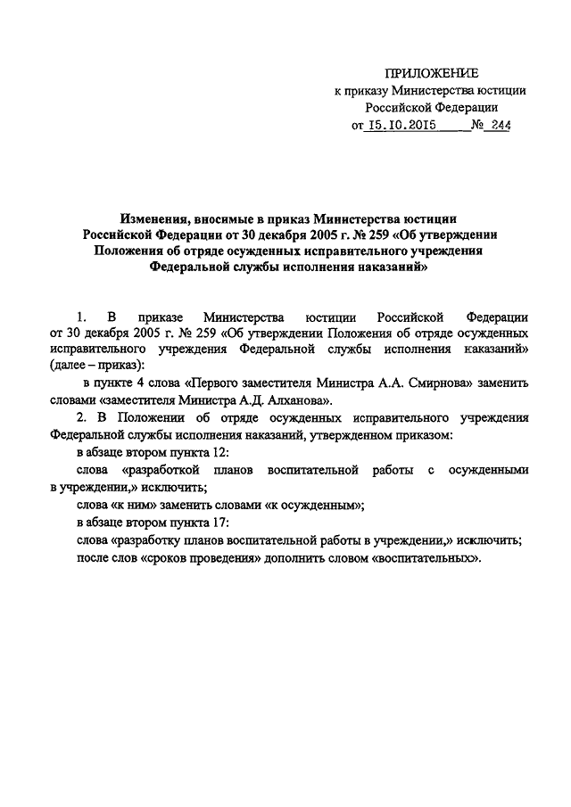 ПРИКАЗ Минюста РФ от 15.10.2015 N 244