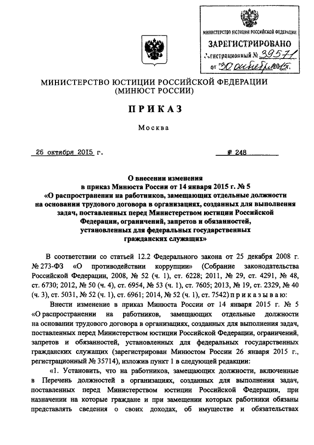 ПРИКАЗ Минюста РФ от 26.10.2015 N 248
