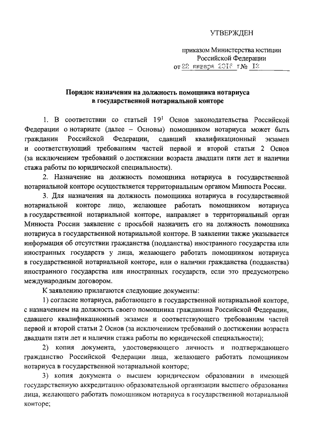 ПРИКАЗ Минюста РФ от 22.01.2016 N 12