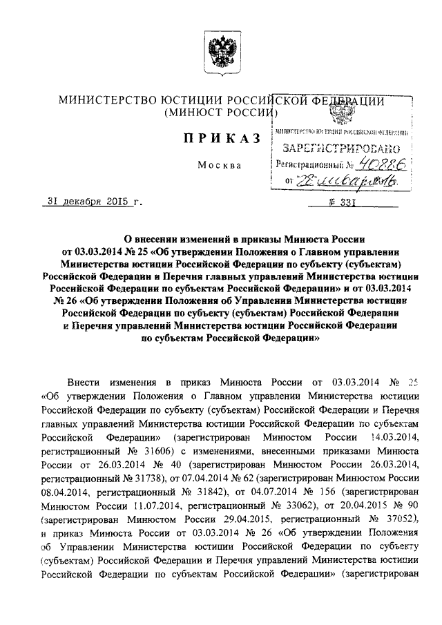 ПРИКАЗ Минюста РФ от 31.12.2015 N 331