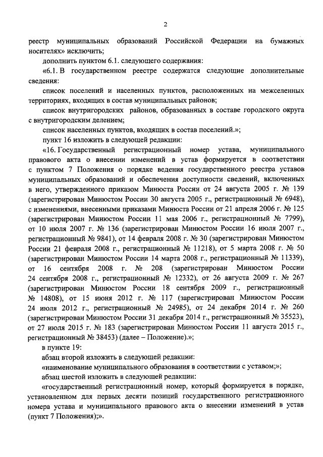 "О ВНЕСЕНИИ ИЗМЕНЕНИЙ В ПРИКАЗ МИНЮСТА РОССИИ ОТ 14 ФЕВРАЛЯ 2008 Г. N 31 "ОБ УТВЕРЖДЕНИИ ПОЛОЖЕНИЯ ОБ ОРГАНИЗАЦИИ РАБОТЫ ПО ВЕДЕНИЮ ГОСУДАРСТВЕННЫХ РЕЕСТРОВ УСТАВОВ МУНИЦИПАЛЬНЫХ ОБРАЗОВАНИЙ И МУНИЦИПАЛЬНЫХ ОБРАЗОВАНИЙ РОССИЙСКОЙ ФЕДЕРАЦИИ В ЭЛЕКТРОННОМ ВИДЕ"