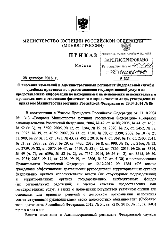 ПРИКАЗ Минюста РФ от 28.12.2015 N 321