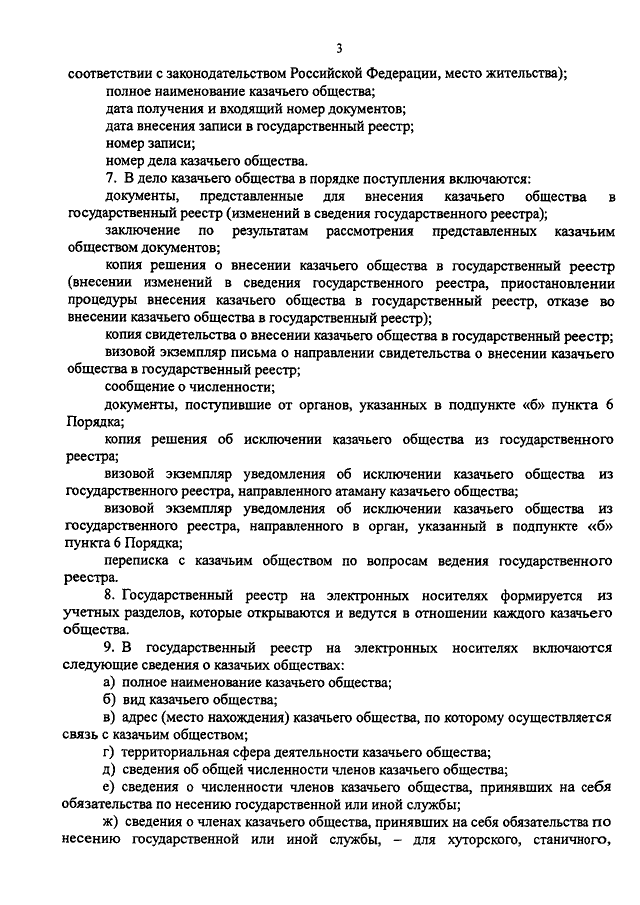 "ОБ УТВЕРЖДЕНИИ ПОРЯДКА ВЕДЕНИЯ ГОСУДАРСТВЕННОГО РЕЕСТРА КАЗАЧЬИХ ОБЩЕСТВ В РОССИЙСКОЙ ФЕДЕРАЦИИ"