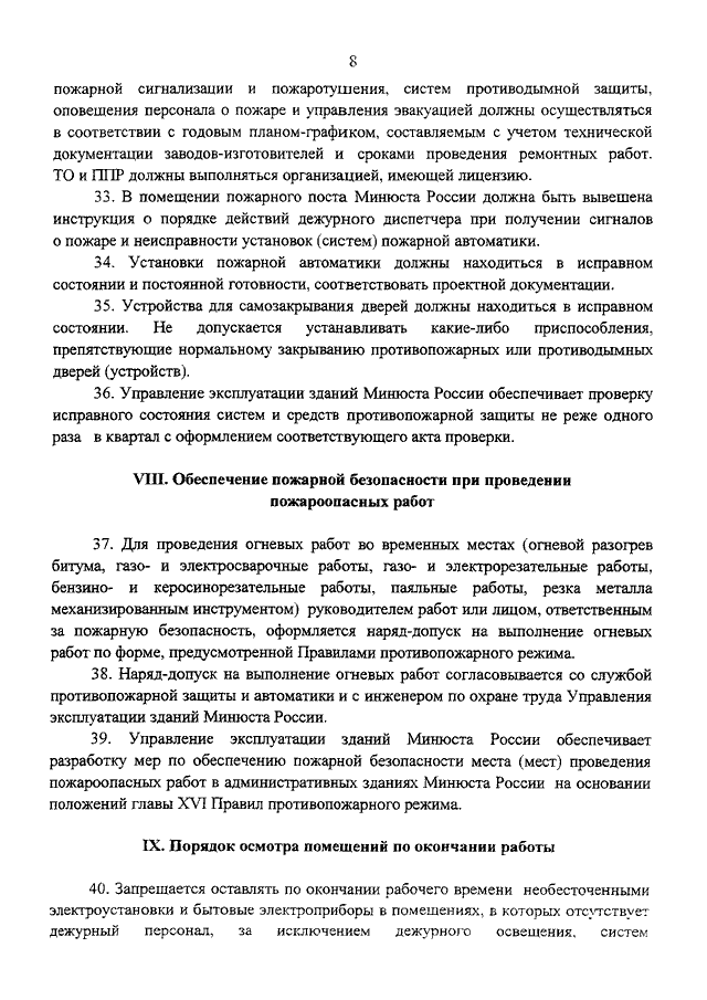 "О МЕРАХ ПО ОБЕСПЕЧЕНИЮ ПОЖАРНОЙ БЕЗОПАСНОСТИ В АДМИНИСТРАТИВНЫХ ЗДАНИЯХ МИНЮСТА РОССИИ И НА ПРИЛЕГАЮЩЕЙ К НИМ ТЕРРИТОРИИ"