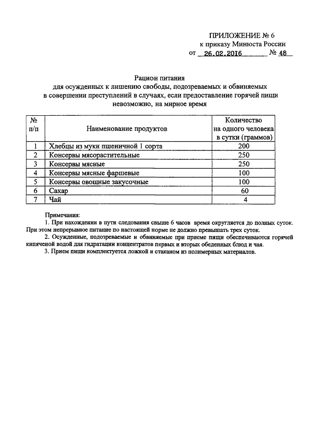 "ОБ УСТАНОВЛЕНИИ ПОВЫШЕННЫХ НОРМ ПИТАНИЯ, РАЦИОНА ПИТАНИЯ И НОРМ ЗАМЕНЫ ОДНИХ ПРОДУКТОВ ПИТАНИЯ ДРУГИМИ, ПРИМЕНЯЕМЫХ ПРИ ОРГАНИЗАЦИИ ПИТАНИЯ ОСУЖДЕННЫХ К ЛИШЕНИЮ СВОБОДЫ, А ТАКЖЕ ПОДОЗРЕВАЕМЫХ И ОБВИНЯЕМЫХ В СОВЕРШЕНИИ ПРЕСТУПЛЕНИЙ, НАХОДЯЩИХСЯ В УЧРЕЖДЕНИЯХ ФЕДЕРАЛЬНОЙ СЛУЖБЫ ИСПОЛНЕНИЯ НАКАЗАНИЙ, НА МИРНОЕ ВРЕМЯ"