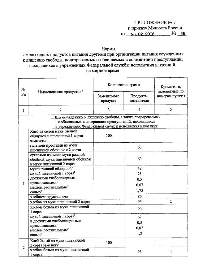 "ОБ УСТАНОВЛЕНИИ ПОВЫШЕННЫХ НОРМ ПИТАНИЯ, РАЦИОНА ПИТАНИЯ И НОРМ ЗАМЕНЫ ОДНИХ ПРОДУКТОВ ПИТАНИЯ ДРУГИМИ, ПРИМЕНЯЕМЫХ ПРИ ОРГАНИЗАЦИИ ПИТАНИЯ ОСУЖДЕННЫХ К ЛИШЕНИЮ СВОБОДЫ, А ТАКЖЕ ПОДОЗРЕВАЕМЫХ И ОБВИНЯЕМЫХ В СОВЕРШЕНИИ ПРЕСТУПЛЕНИЙ, НАХОДЯЩИХСЯ В УЧРЕЖДЕНИЯХ ФЕДЕРАЛЬНОЙ СЛУЖБЫ ИСПОЛНЕНИЯ НАКАЗАНИЙ, НА МИРНОЕ ВРЕМЯ"