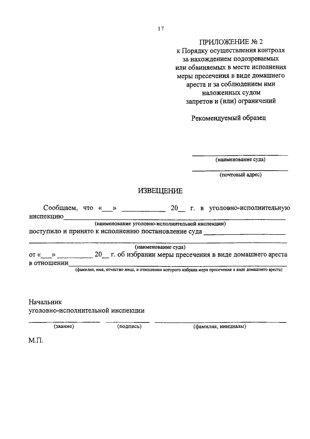 "ОБ УТВЕРЖДЕНИИ ПОРЯДКА ОСУЩЕСТВЛЕНИЯ КОНТРОЛЯ ЗА НАХОЖДЕНИЕМ ПОДОЗРЕВАЕМЫХ ИЛИ ОБВИНЯЕМЫХ В МЕСТЕ ИСПОЛНЕНИЯ МЕРЫ ПРЕСЕЧЕНИЯ В ВИДЕ ДОМАШНЕГО АРЕСТА И ЗА СОБЛЮДЕНИЕМ ИМИ НАЛОЖЕННЫХ СУДОМ ЗАПРЕТОВ И (ИЛИ) ОГРАНИЧЕНИЙ"