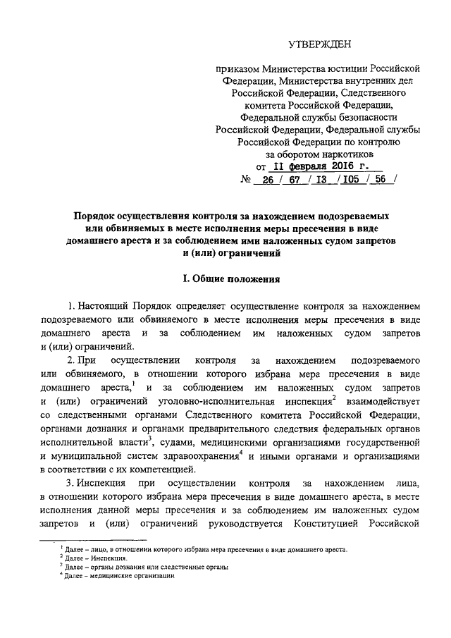 ПРИКАЗ Минюста РФ N 26, МВД РФ N 67, Следственного комитета РФ N 13, ФСБ РФ N 105, ФСКН РФ N 56 от 11.02.2016