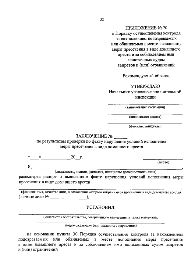 "ОБ УТВЕРЖДЕНИИ ПОРЯДКА ОСУЩЕСТВЛЕНИЯ КОНТРОЛЯ ЗА НАХОЖДЕНИЕМ ПОДОЗРЕВАЕМЫХ ИЛИ ОБВИНЯЕМЫХ В МЕСТЕ ИСПОЛНЕНИЯ МЕРЫ ПРЕСЕЧЕНИЯ В ВИДЕ ДОМАШНЕГО АРЕСТА И ЗА СОБЛЮДЕНИЕМ ИМИ НАЛОЖЕННЫХ СУДОМ ЗАПРЕТОВ И (ИЛИ) ОГРАНИЧЕНИЙ"