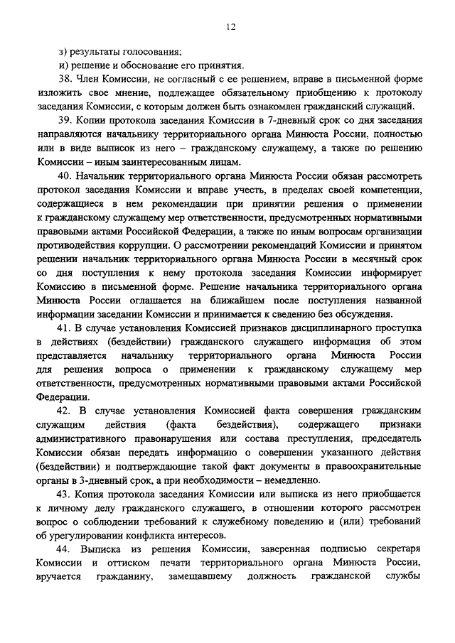 "ОБ УТВЕРЖДЕНИИ ПОРЯДКА ФОРМИРОВАНИЯ И ДЕЯТЕЛЬНОСТИ КОМИССИИ ТЕРРИТОРИАЛЬНОГО ОРГАНА МИНЮСТА РОССИИ ПО СОБЛЮДЕНИЮ ТРЕБОВАНИЙ К СЛУЖЕБНОМУ ПОВЕДЕНИЮ ФЕДЕРАЛЬНЫХ ГОСУДАРСТВЕННЫХ ГРАЖДАНСКИХ СЛУЖАЩИХ И УРЕГУЛИРОВАНИЮ КОНФЛИКТА ИНТЕРЕСОВ"