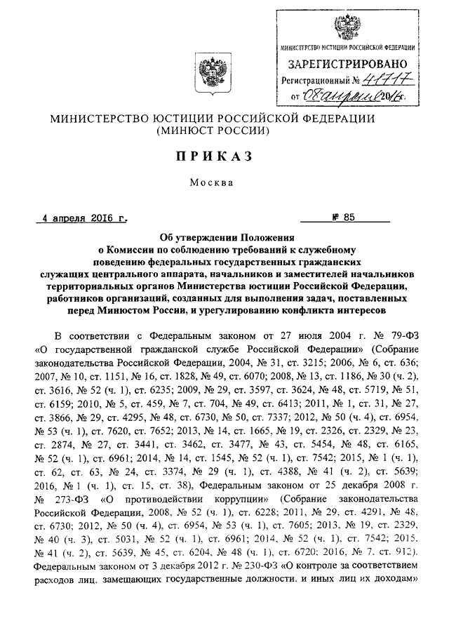 ПРИКАЗ Минюста РФ от 04.04.2016 N 85
