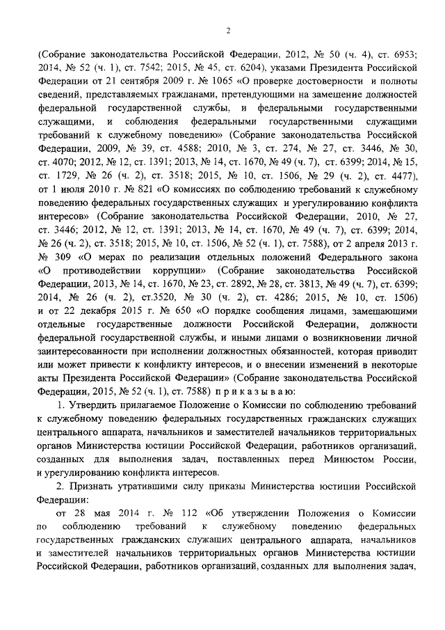 "ОБ УТВЕРЖДЕНИИ ПОЛОЖЕНИЯ О КОМИССИИ ПО СОБЛЮДЕНИЮ ТРЕБОВАНИЙ К СЛУЖЕБНОМУ ПОВЕДЕНИЮ ФЕДЕРАЛЬНЫХ ГОСУДАРСТВЕННЫХ ГРАЖДАНСКИХ СЛУЖАЩИХ ЦЕНТРАЛЬНОГО АППАРАТА, НАЧАЛЬНИКОВ И ЗАМЕСТИТЕЛЕЙ НАЧАЛЬНИКОВ ТЕРРИТОРИАЛЬНЫХ ОРГАНОВ МИНИСТЕРСТВА ЮСТИЦИИ РОССИЙСКОЙ ФЕДЕРАЦИИ, РАБОТНИКОВ ОРГАНИЗАЦИЙ, СОЗДАННЫХ ДЛЯ ВЫПОЛНЕНИЯ ЗАДАЧ, ПОСТАВЛЕННЫХ ПЕРЕД МИНЮСТОМ РОССИИ, И УРЕГУЛИРОВАНИЮ КОНФЛИКТА ИНТЕРЕСОВ"
