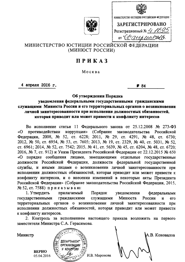 ПРИКАЗ Минюста РФ от 04.04.2016 N 84