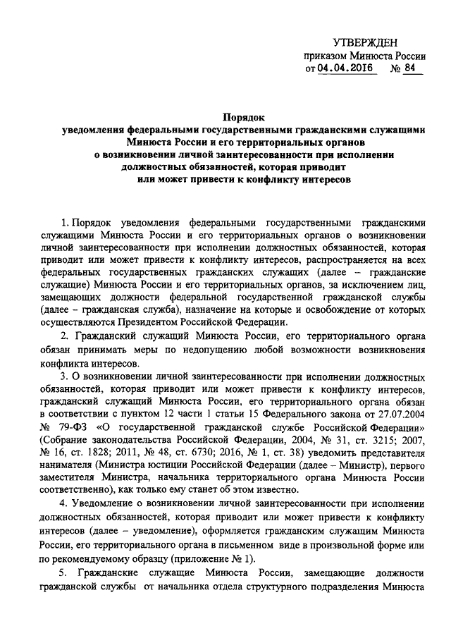 ПРИКАЗ Минюста РФ от 04.04.2016 N 84