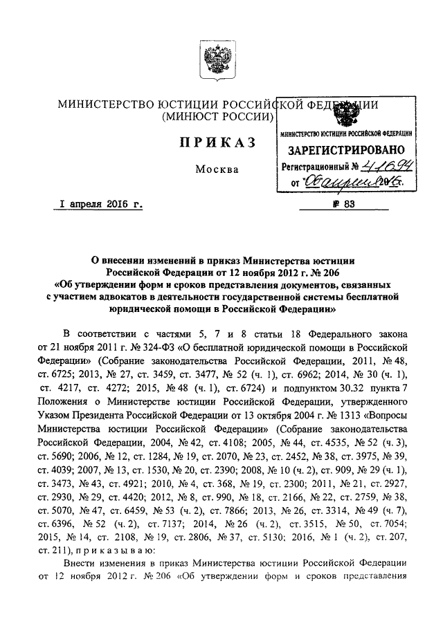 ПРИКАЗ Минюста РФ от 01.04.2016 N 83