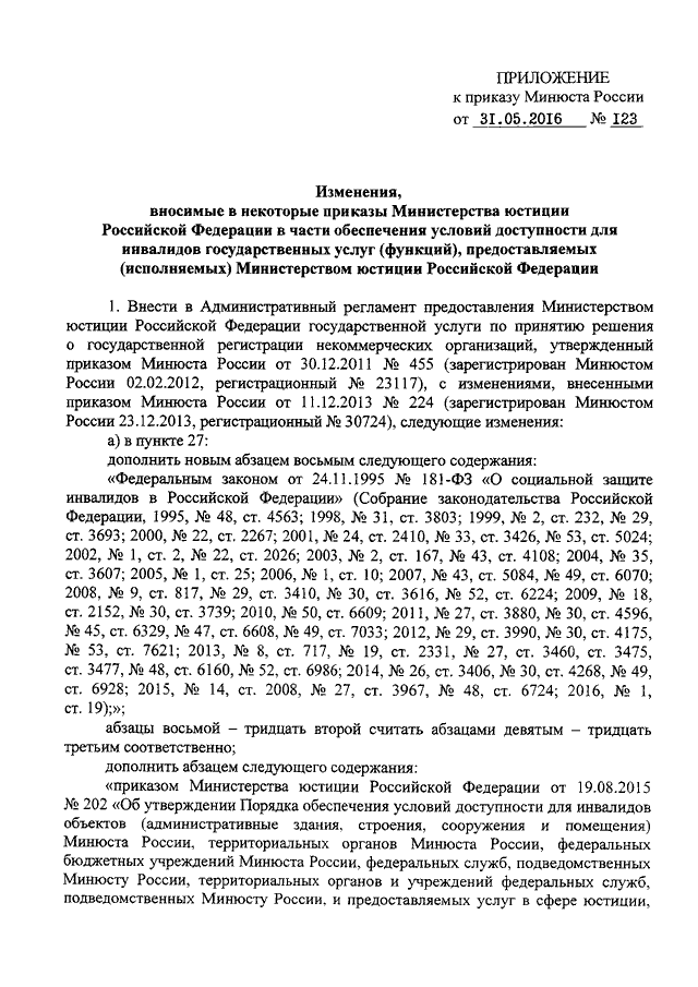 ПРИКАЗ Минюста РФ от 31.05.2016 N 123