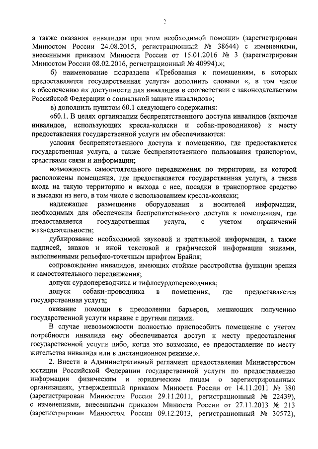 "О ВНЕСЕНИИ ИЗМЕНЕНИЙ В НЕКОТОРЫЕ ПРИКАЗЫ МИНИСТЕРСТВА ЮСТИЦИИ РОССИЙСКОЙ ФЕДЕРАЦИИ В ЧАСТИ ОБЕСПЕЧЕНИЯ УСЛОВИЙ ДОСТУПНОСТИ ДЛЯ ИНВАЛИДОВ ГОСУДАРСТВЕННЫХ УСЛУГ (ФУНКЦИЙ), ПРЕДОСТАВЛЯЕМЫХ (ИСПОЛНЯЕМЫХ) МИНИСТЕРСТВОМ ЮСТИЦИИ РОССИЙСКОЙ ФЕДЕРАЦИИ"