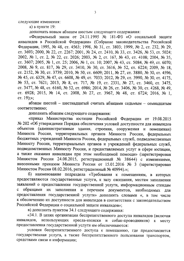 "О ВНЕСЕНИИ ИЗМЕНЕНИЙ В НЕКОТОРЫЕ ПРИКАЗЫ МИНИСТЕРСТВА ЮСТИЦИИ РОССИЙСКОЙ ФЕДЕРАЦИИ В ЧАСТИ ОБЕСПЕЧЕНИЯ УСЛОВИЙ ДОСТУПНОСТИ ДЛЯ ИНВАЛИДОВ ГОСУДАРСТВЕННЫХ УСЛУГ (ФУНКЦИЙ), ПРЕДОСТАВЛЯЕМЫХ (ИСПОЛНЯЕМЫХ) МИНИСТЕРСТВОМ ЮСТИЦИИ РОССИЙСКОЙ ФЕДЕРАЦИИ"