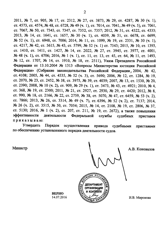 "ОБ УТВЕРЖДЕНИИ ПОРЯДКА ОСУЩЕСТВЛЕНИЯ ПРИВОДА СУДЕБНЫМИ ПРИСТАВАМИ ПО ОБЕСПЕЧЕНИЮ УСТАНОВЛЕННОГО ПОРЯДКА ДЕЯТЕЛЬНОСТИ СУДОВ"