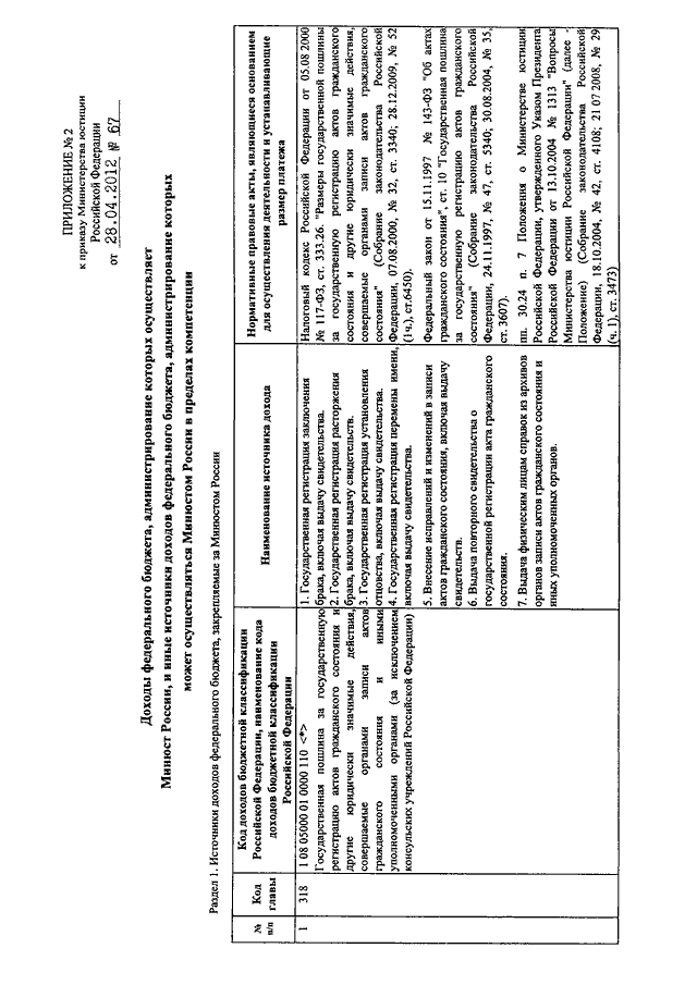 ПРИКАЗ Минюста РФ от 28.04.2012 N 67
