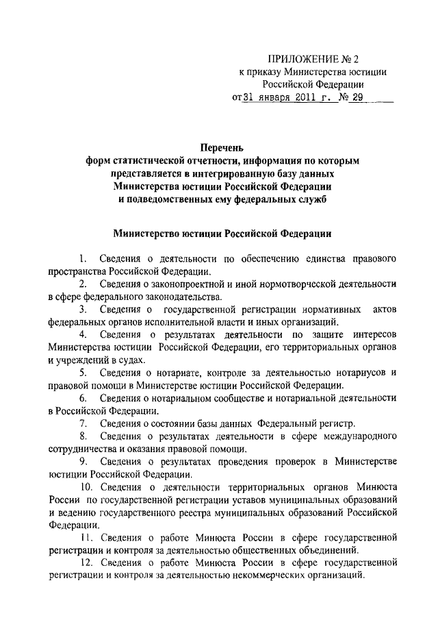 ПРИКАЗ Минюста РФ от 31.01.2011 N 29