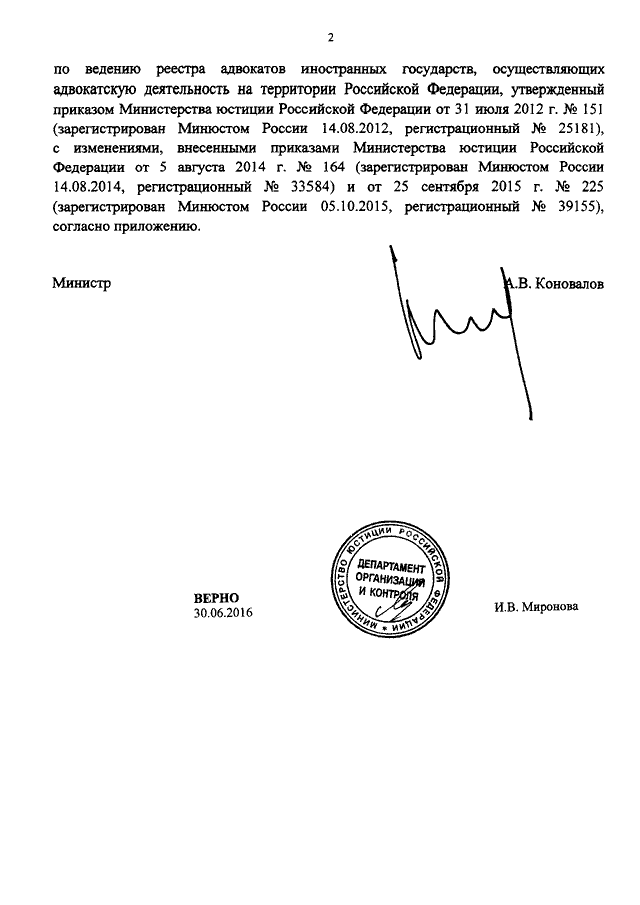 ПРИКАЗ Минюста РФ от 29.06.2016 N 151