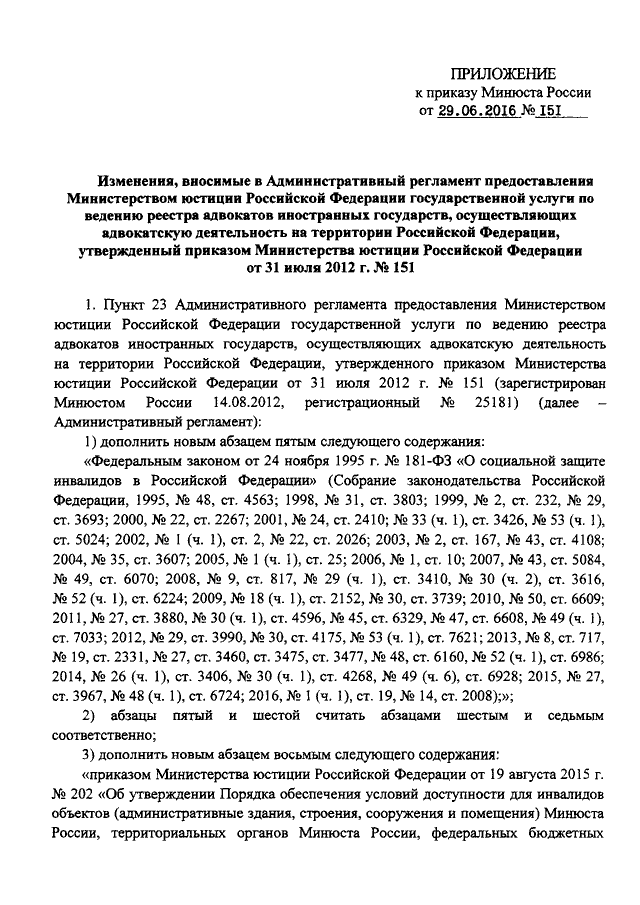 ПРИКАЗ Минюста РФ от 29.06.2016 N 151