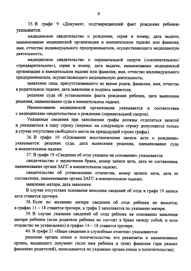 "ОБ УТВЕРЖДЕНИИ ПОРЯДКА ЗАПОЛНЕНИЯ БЛАНКОВ ЗАПИСЕЙ АКТОВ ГРАЖДАНСКОГО СОСТОЯНИЯ И БЛАНКОВ СВИДЕТЕЛЬСТВ О ГОСУДАРСТВЕННОЙ РЕГИСТРАЦИИ АКТОВ ГРАЖДАНСКОГО СОСТОЯНИЯ"