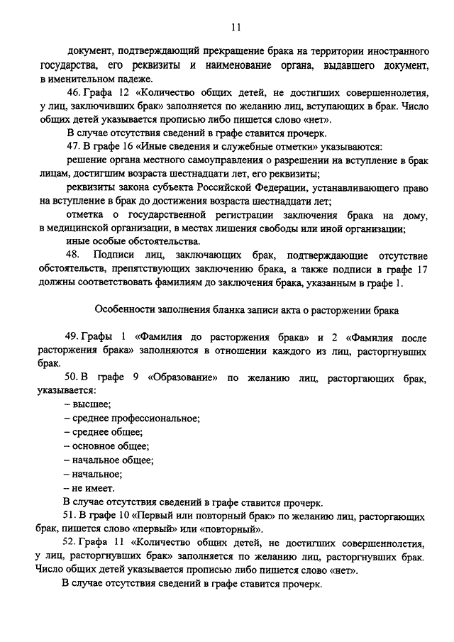 "ОБ УТВЕРЖДЕНИИ ПОРЯДКА ЗАПОЛНЕНИЯ БЛАНКОВ ЗАПИСЕЙ АКТОВ ГРАЖДАНСКОГО СОСТОЯНИЯ И БЛАНКОВ СВИДЕТЕЛЬСТВ О ГОСУДАРСТВЕННОЙ РЕГИСТРАЦИИ АКТОВ ГРАЖДАНСКОГО СОСТОЯНИЯ"