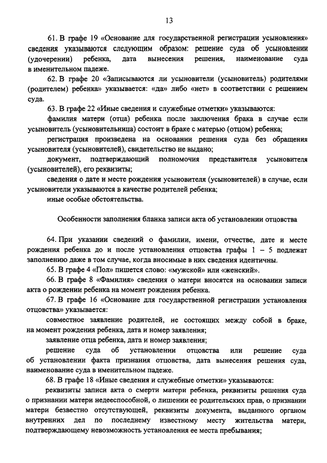 "ОБ УТВЕРЖДЕНИИ ПОРЯДКА ЗАПОЛНЕНИЯ БЛАНКОВ ЗАПИСЕЙ АКТОВ ГРАЖДАНСКОГО СОСТОЯНИЯ И БЛАНКОВ СВИДЕТЕЛЬСТВ О ГОСУДАРСТВЕННОЙ РЕГИСТРАЦИИ АКТОВ ГРАЖДАНСКОГО СОСТОЯНИЯ"
