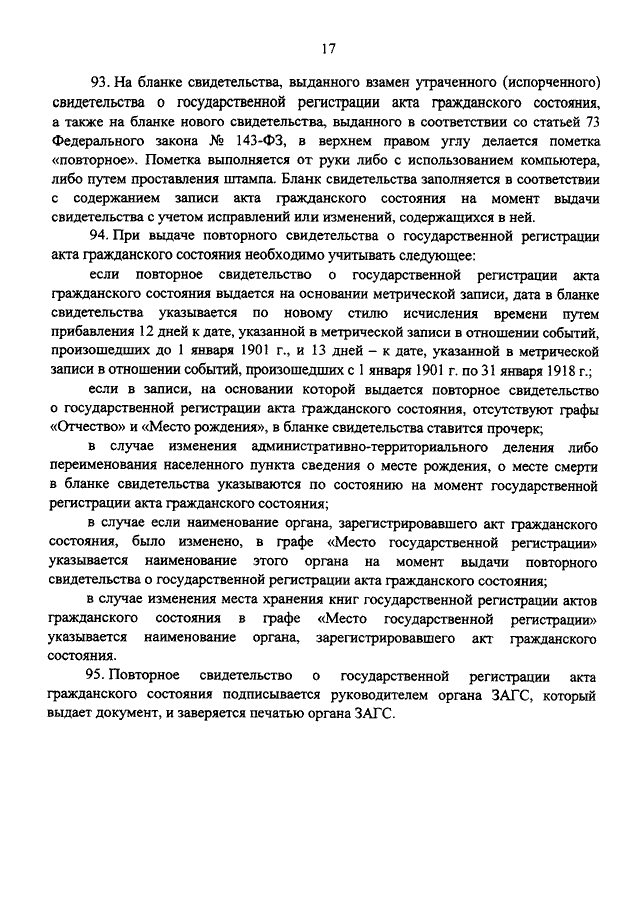 "ОБ УТВЕРЖДЕНИИ ПОРЯДКА ЗАПОЛНЕНИЯ БЛАНКОВ ЗАПИСЕЙ АКТОВ ГРАЖДАНСКОГО СОСТОЯНИЯ И БЛАНКОВ СВИДЕТЕЛЬСТВ О ГОСУДАРСТВЕННОЙ РЕГИСТРАЦИИ АКТОВ ГРАЖДАНСКОГО СОСТОЯНИЯ"