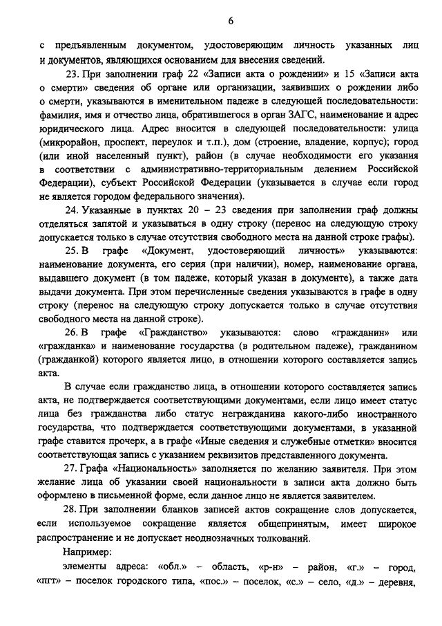 "ОБ УТВЕРЖДЕНИИ ПОРЯДКА ЗАПОЛНЕНИЯ БЛАНКОВ ЗАПИСЕЙ АКТОВ ГРАЖДАНСКОГО СОСТОЯНИЯ И БЛАНКОВ СВИДЕТЕЛЬСТВ О ГОСУДАРСТВЕННОЙ РЕГИСТРАЦИИ АКТОВ ГРАЖДАНСКОГО СОСТОЯНИЯ"