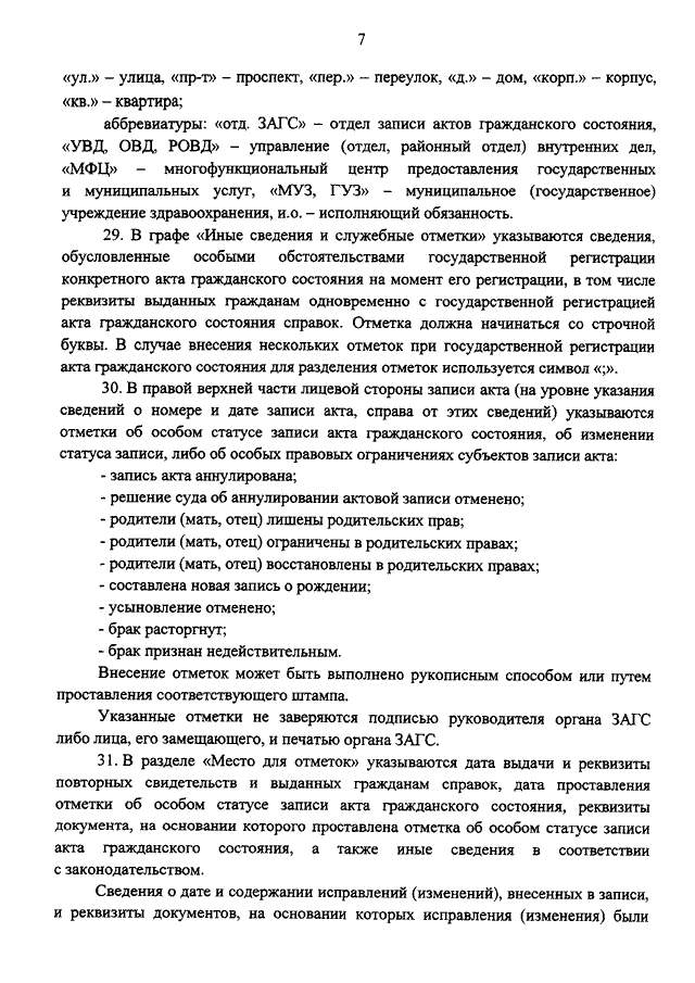 "ОБ УТВЕРЖДЕНИИ ПОРЯДКА ЗАПОЛНЕНИЯ БЛАНКОВ ЗАПИСЕЙ АКТОВ