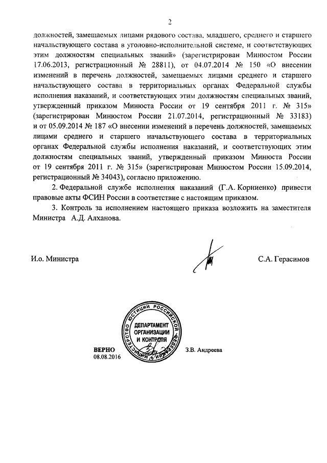 "О ВНЕСЕНИИ ИЗМЕНЕНИЙ В ПРИКАЗ МИНИСТЕРСТВА ЮСТИЦИИ РОССИЙСКОЙ ФЕДЕРАЦИИ ОТ 19.09.2011 N 315 "ОБ УТВЕРЖДЕНИИ ПЕРЕЧНЕЙ ДОЛЖНОСТЕЙ, ЗАМЕЩАЕМЫХ ЛИЦАМИ РЯДОВОГО СОСТАВА, МЛАДШЕГО, СРЕДНЕГО И СТАРШЕГО НАЧАЛЬСТВУЮЩЕГО СОСТАВА В УГОЛОВНО - ИСПОЛНИТЕЛЬНОЙ СИСТЕМЕ, И СООТВЕТСТВУЮЩИХ ЭТИМ ДОЛЖНОСТЯМ СПЕЦИАЛЬНЫХ ЗВАНИЙ"