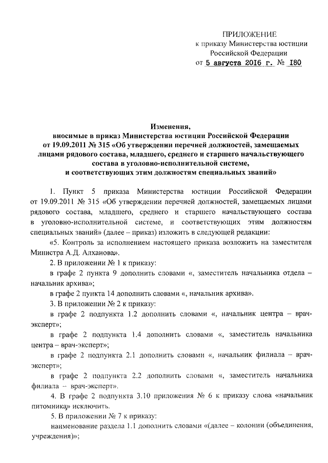 ПРИКАЗ Минюста РФ от 05.08.2016 N 180