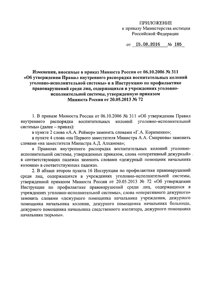 ПРИКАЗ Минюста РФ от 15.08.2016 N 185