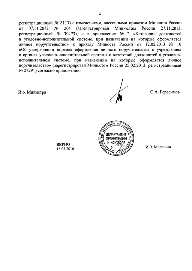 ПРИКАЗ Минюста РФ от 15.08.2016 N 184