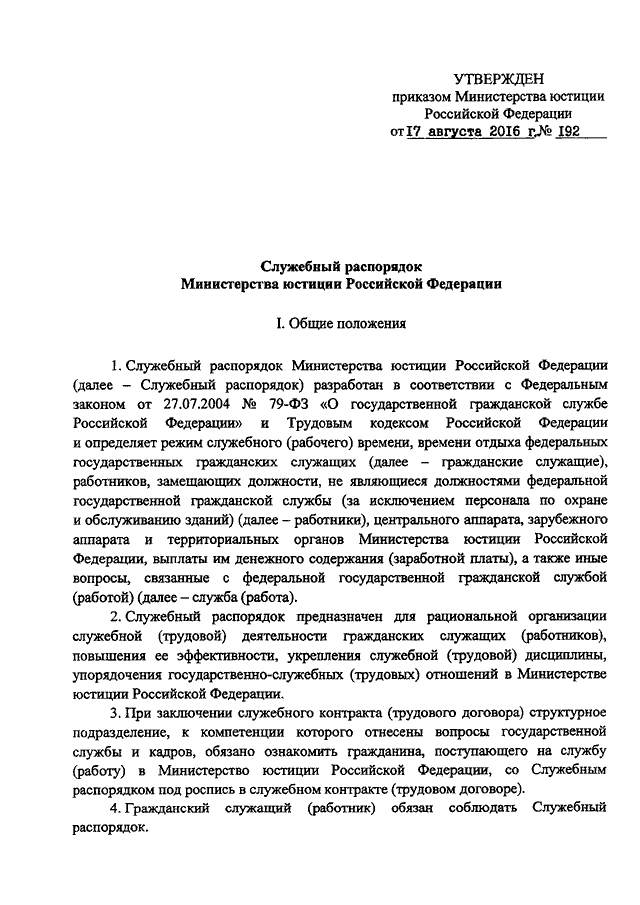 ПРИКАЗ Минюста РФ от 17.08.2016 N 192