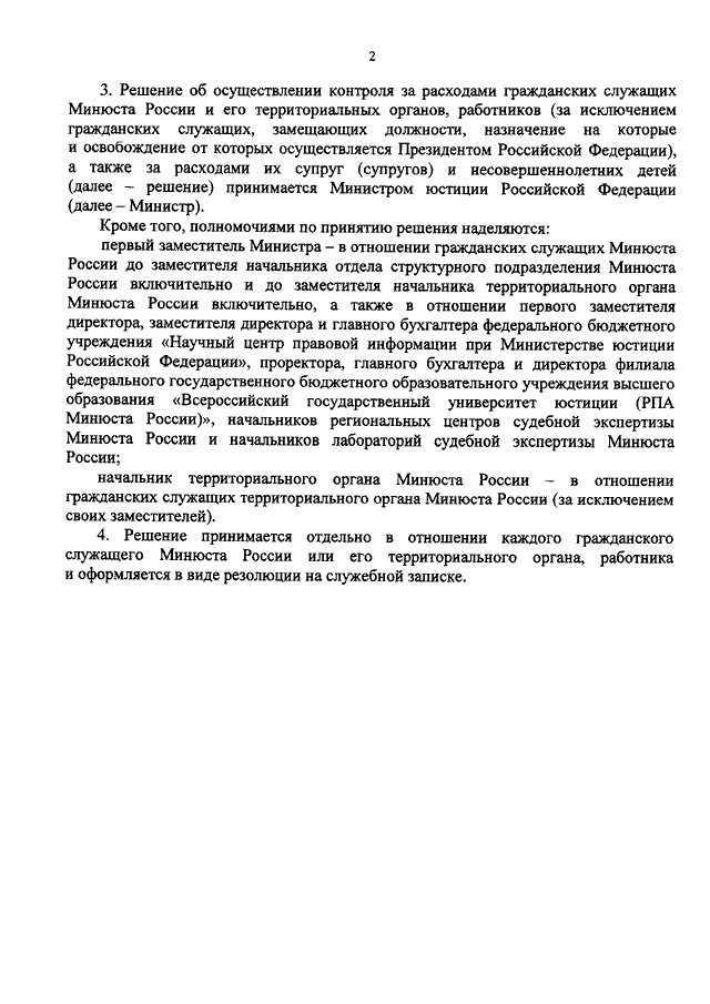 "ОБ УТВЕРЖДЕНИИ ПОРЯДКА ПРИНЯТИЯ РЕШЕНИЯ ОБ ОСУЩЕСТВЛЕНИИ КОНТРОЛЯ ЗА РАСХОДАМИ ФЕДЕРАЛЬНЫХ ГОСУДАРСТВЕННЫХ ГРАЖДАНСКИХ СЛУЖАЩИХ МИНЮСТА РОССИИ И ЕГО ТЕРРИТОРИАЛЬНЫХ ОРГАНОВ, РАБОТНИКОВ ОРГАНИЗАЦИЙ, СОЗДАННЫХ ДЛЯ ВЫПОЛНЕНИЯ ПОСТАВЛЕННЫХ ПЕРЕД МИНЮСТОМ РОССИИ ЗАДАЧ, А ТАКЖЕ ЗА РАСХОДАМИ ИХ СУПРУГ (СУПРУГОВ) И НЕСОВЕРШЕННОЛЕТНИХ ДЕТЕЙ"