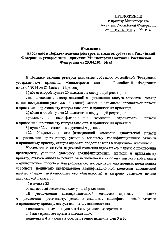 ПРИКАЗ Минюста РФ от 26.09.2016 N 214
