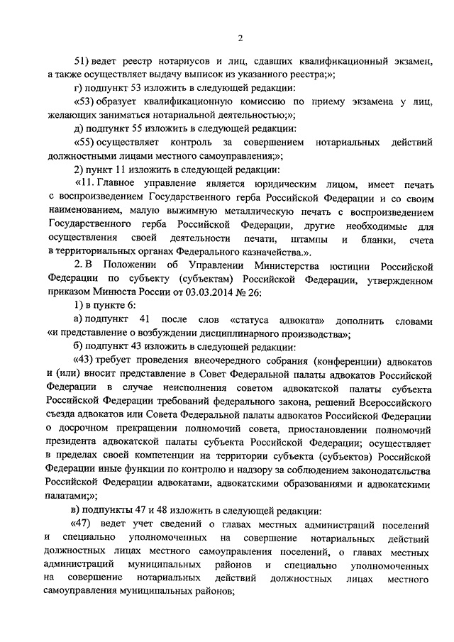 "О ВНЕСЕНИИ ИЗМЕНЕНИЙ В ПОЛОЖЕНИЕ О ГЛАВНОМ УПРАВЛЕНИИ МИНИСТЕРСТВА ЮСТИЦИИ РОССИЙСКОЙ ФЕДЕРАЦИИ ПО СУБЪЕКТУ (СУБЪЕКТАМ) РОССИЙСКОЙ ФЕДЕРАЦИИ, УТВЕРЖДЕННОЕ ПРИКАЗОМ МИНЮСТА РОССИИ ОТ 03.03.2014 N 25, И В ПОЛОЖЕНИЕ ОБ УПРАВЛЕНИИ МИНИСТЕРСТВА ЮСТИЦИИ РОССИЙСКОЙ ФЕДЕРАЦИИ ПО СУБЪЕКТУ (СУБЪЕКТАМ) РОССИЙСКОЙ ФЕДЕРАЦИИ, УТВЕРЖДЕННОЕ ПРИКАЗОМ МИНЮСТА РОССИИ ОТ 03.03.2014 N 26"