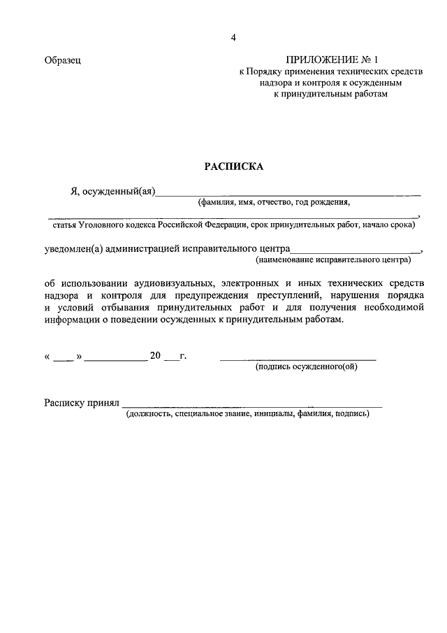 "ОБ УТВЕРЖДЕНИИ ПОРЯДКА ПРИМЕНЕНИЯ ТЕХНИЧЕСКИХ СРЕДСТВ НАДЗОРА И КОНТРОЛЯ К ОСУЖДЕННЫМ К ПРИНУДИТЕЛЬНЫМ РАБОТАМ"