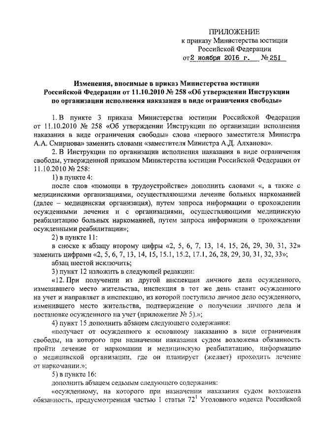 ПРИКАЗ Минюста РФ от 02.11.2016 N 251