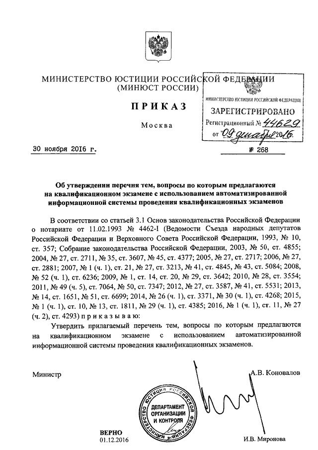 ПРИКАЗ Минюста РФ от 30.11.2016 N 268