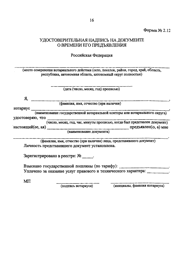 (вместе с "ФОРМАМИ РЕЕСТРОВ РЕГИСТРАЦИИ ...", "ПОРЯДКОМ ОФОРМЛЕНИЯ ФОРМ РЕЕСТРОВ РЕГИСТРАЦИИ ...", утв. Решением Правления Федеральной нотариальной палаты от 17.11.2016 N 11/16, Приказом Минюста РФ от 27.12.2016 N 313) (Зарегистрировано в Минюсте РФ 29.12.2016 N 45046)