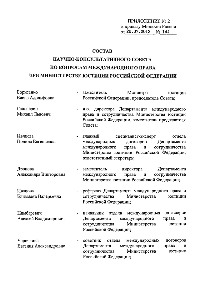 ПРИКАЗ Минюста РФ от 26.07.2012 N 144