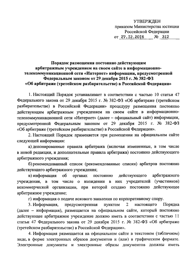 ПРИКАЗ Минюста РФ от 27.12.2016 N 312